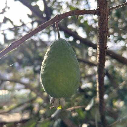 フェイジョアは、比較的低い位置にある横に伸びた枝に実がつくため、剪定する枝を間違えると実がつかなくなってしまうので、注意が必要です。