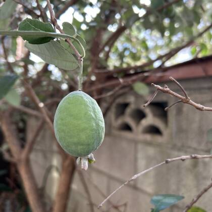 フェイジョアは、南米のウルグアイ、パラグアイ、ブラジル南部が原産のフトモモ科の植物です。