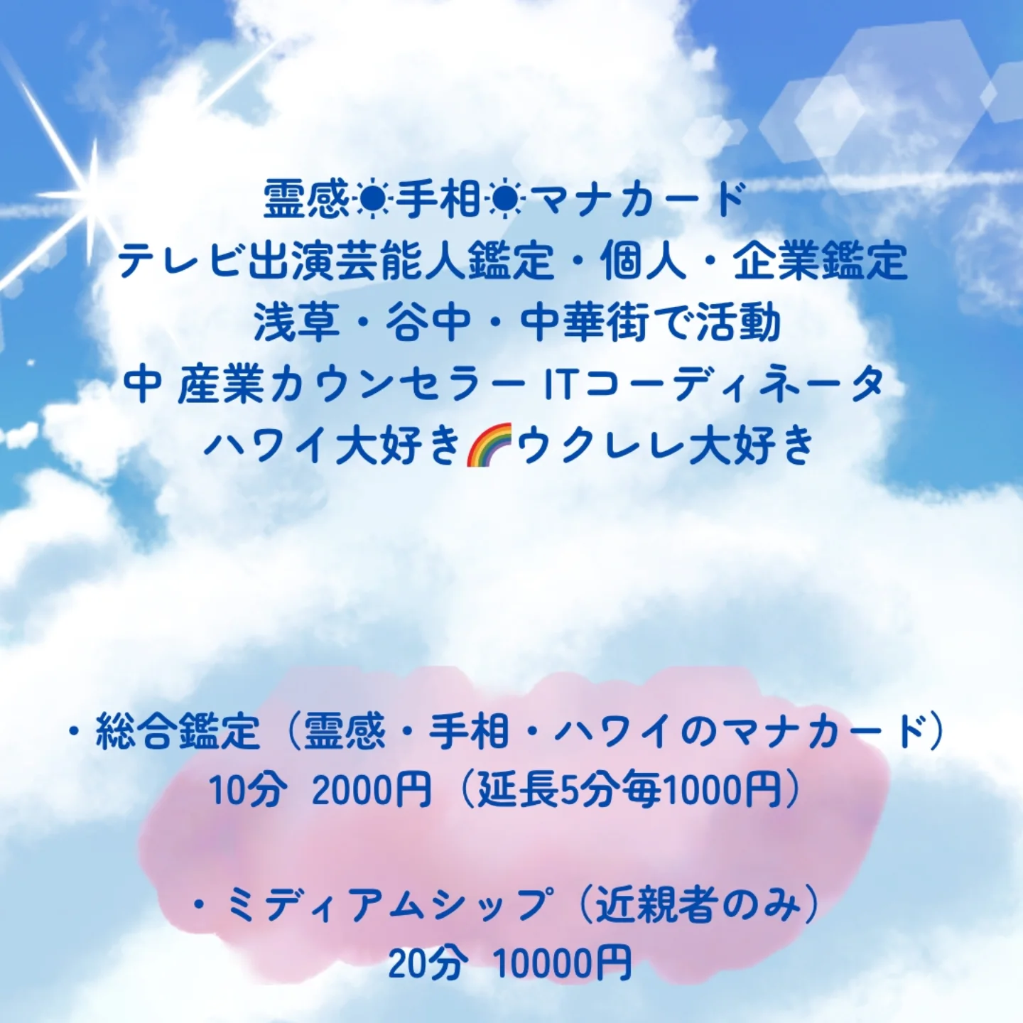 占術混ぜ合わせた総合鑑定で、10分で2000円です。