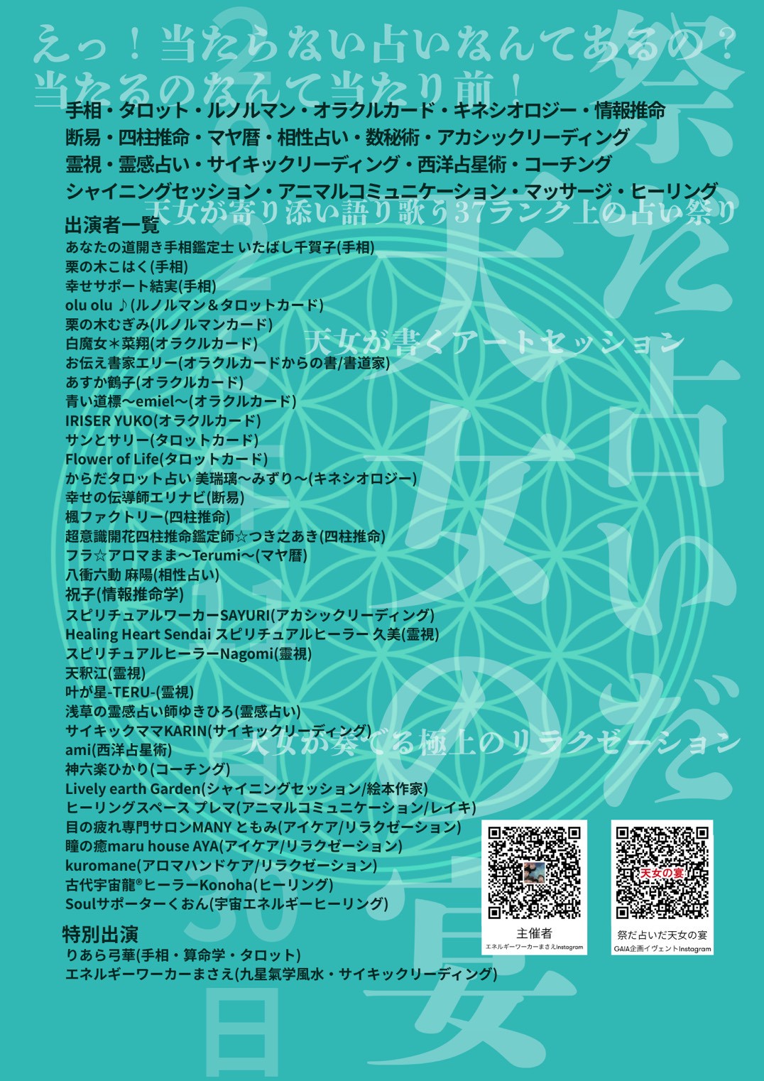 イベント名が『祭だ占いだ天女の宴』なので、男性でも大丈夫なのか少し不安でしたが、「問題ないですよ」と言われて安心しました。