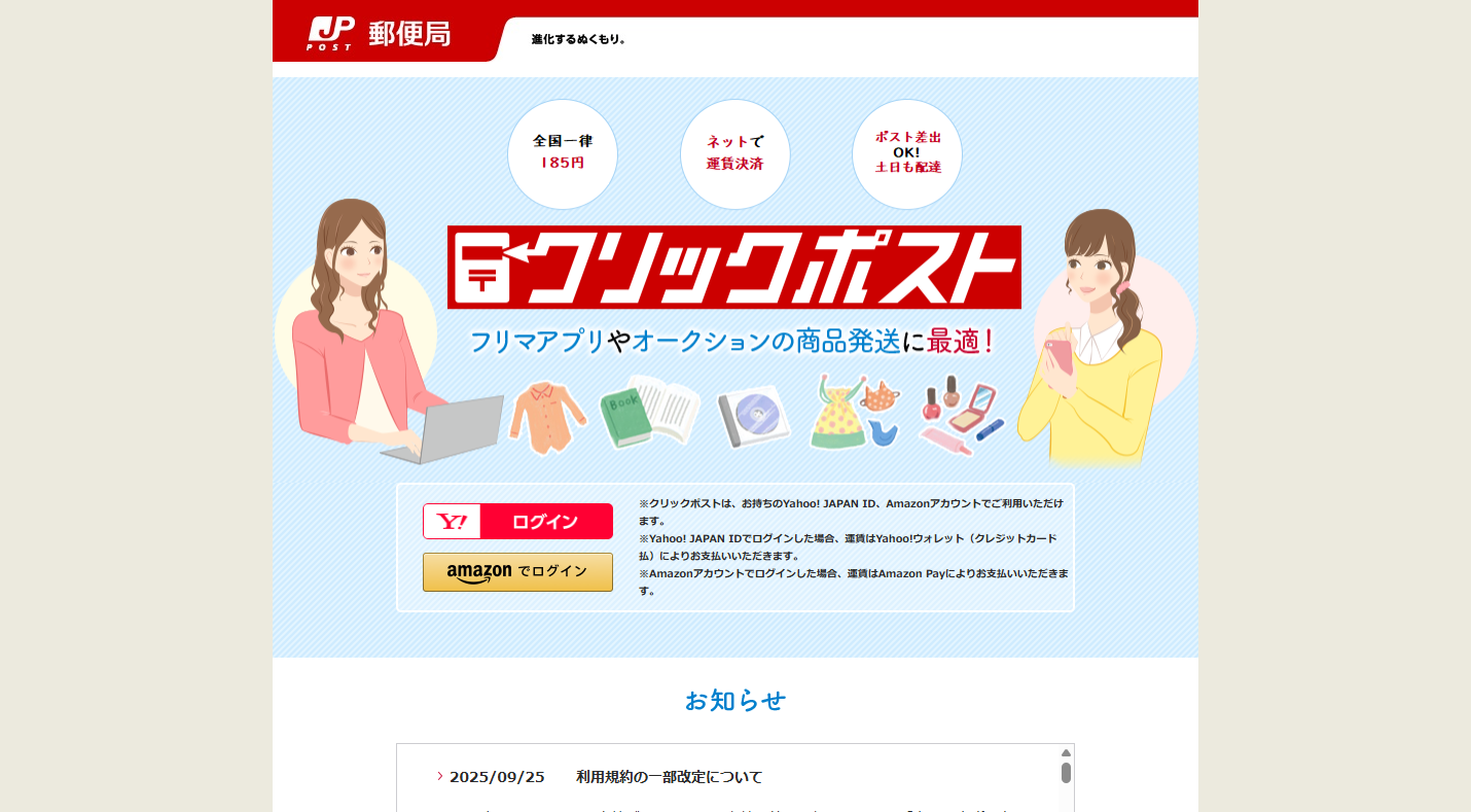 今回は、郵便局さんの「クリックポスト」というサービスをご紹介します。