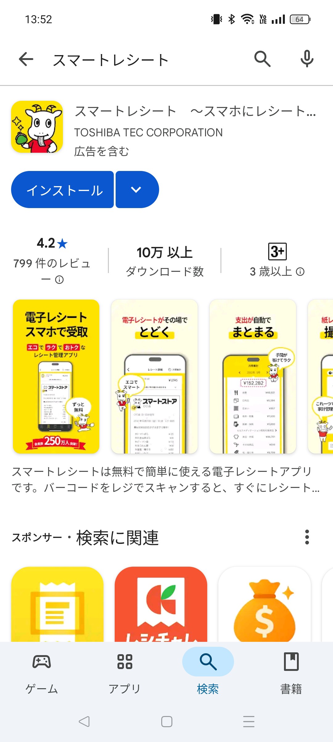 1.App StoreかGoogle Playからスマートレシートを検索してインストールします。